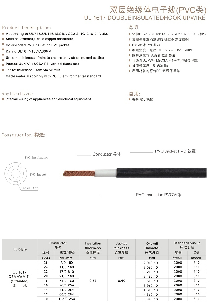美国UL聚氯乙烯PVC线电线电缆列表